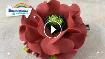 Яркий цветок красного цвета из фоамирана с трехслойной серединкой станет великолепным украшением прически!