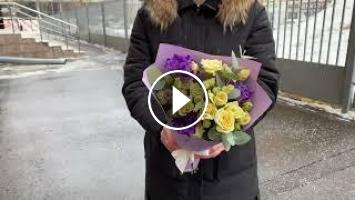 Кремово-фиолетовый микс кустовой розы и эустомы