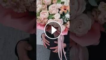 Состав:Маттиола, гербера, роза кустовая, гвоздика кустовая, скимия, эвкалипт, роза пионовидная одноголовая.