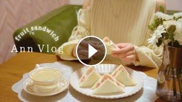 大好物のフルーツを3つ入れたフルーツサンドはヘルシーなクリームを作って、夜に食べる罪悪感を減らしました????