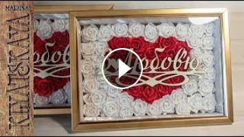 Цветочная картина? А почему бы и нет, было многое, и все те изделия где то на полочках томятся, а такого рода слова всегда будут на виду и конечно же будут греть душу. Из объема в плоскость, оказалось что это ну очень просто, ну а мы же экономим время? Вечерком создали цветы и за короткое время собрали композицию, я их делала сразу две, потому как мамы они такие, их любить нужно вне праздника))