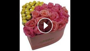 Caja corazon rosas importadas chocolate rocher y brillantes para regalar