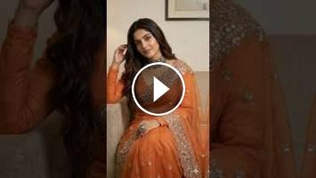 1.A glamorous,high-resolution fashion portrait of a beautiful young woman sitting on a beige textured sofa. She is wearing a vibrant tangerine-orange sheer ensemble saree heavily embellished with intricate mirror work and silver embroidery throughout.The blouse features long, heavily worked sleeves with scalloped edges and a deep neckline. Her long, dark brown wavy hair flows over her shoulder.She wears a heavy,antique silver choker necklace and a massive statement ring on her hand, which rests on her lap.Her other hand is raised near her hair in a candid pose.The background is a simple indoor setting with a plain wall and a glimpse of a framed picture.Soft,flattering indoor lighting, photorealistic, 8k, detailed texture. same face