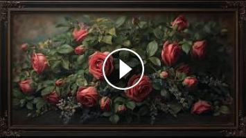 رحلة هادئة داخل عالم من الورود الداكنة بطابع فينتاج راقٍ، حيث تمتزج الألوان العميقة مع جو فني غامض ورومانسي. هذا الفيديو يمنح إحساساً بالهدوء والفخامة في نفس الوقت، مناسب للاسترخاء أو كخلفية جمالية تضيف لمسة فنية مميزة للمكان.